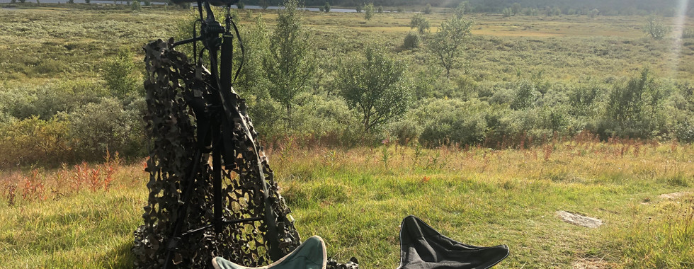 Et godt tips til å lage en spennende leir er å rigge til et kikkertstativ med kammuflasje. Se bilder under for å se når Fanny og Lars ser etter storlom og rype ved Revsjøene.